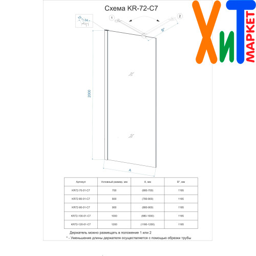 | Комплектация | Усиливающая пристенная штанга из нержавеющей стали - 1195 мм, штангу можно подрезать под необходимый размер |