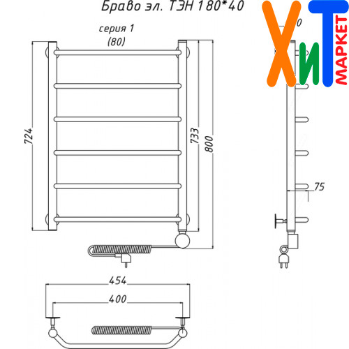 Полотенцесушитель электрический Тругор ЛЦ эл ТЭН 1 80x40